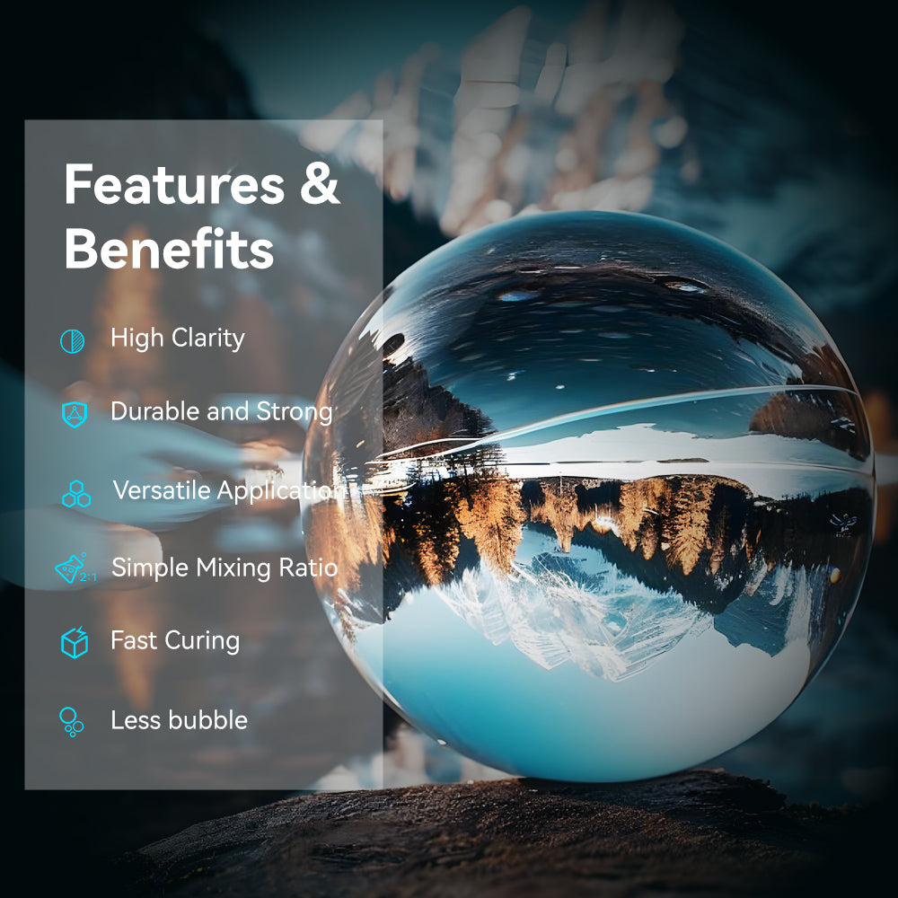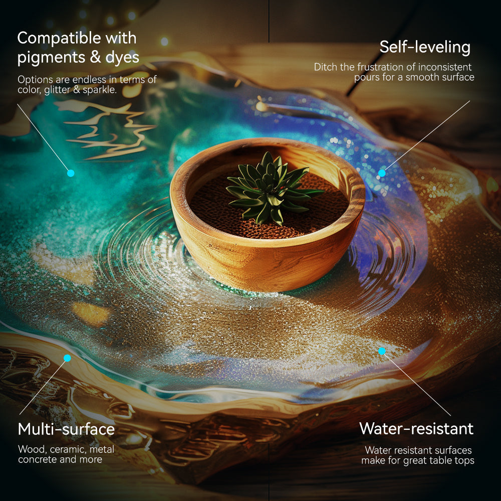 [RESINA EPOXIDICA SENZA BOLLE] Nessuna bolla se mescolata in modo uniforme e lento. La resina epossidica autolivellante ha proprietà antischiuma, garantendo risultati eccellenti. La resina epossidica artigianale può essere utilizzata con polvere di mica, pigmenti fosforescenti, glitter e coloranti per creare interessanti opere d'arte.