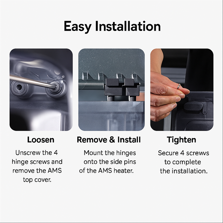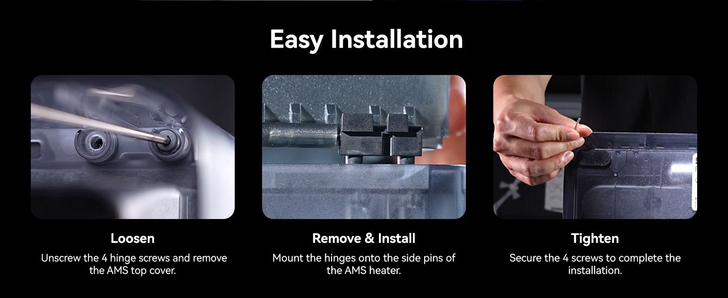 Alta compatibilità: Dopo l'aggiornamento con l'AMS Heater, supporta la stampa a 16 colori sovrapposti e consente di risparmiare spazio. Aggiorna il riscaldatore per la copertura superiore dell'AMS Generazione 1, integrandosi perfettamente con la guarnizione di sigillatura della Generazione 1 e supportando completamente la funzione di conservazione della sigillatura della Generazione 1.