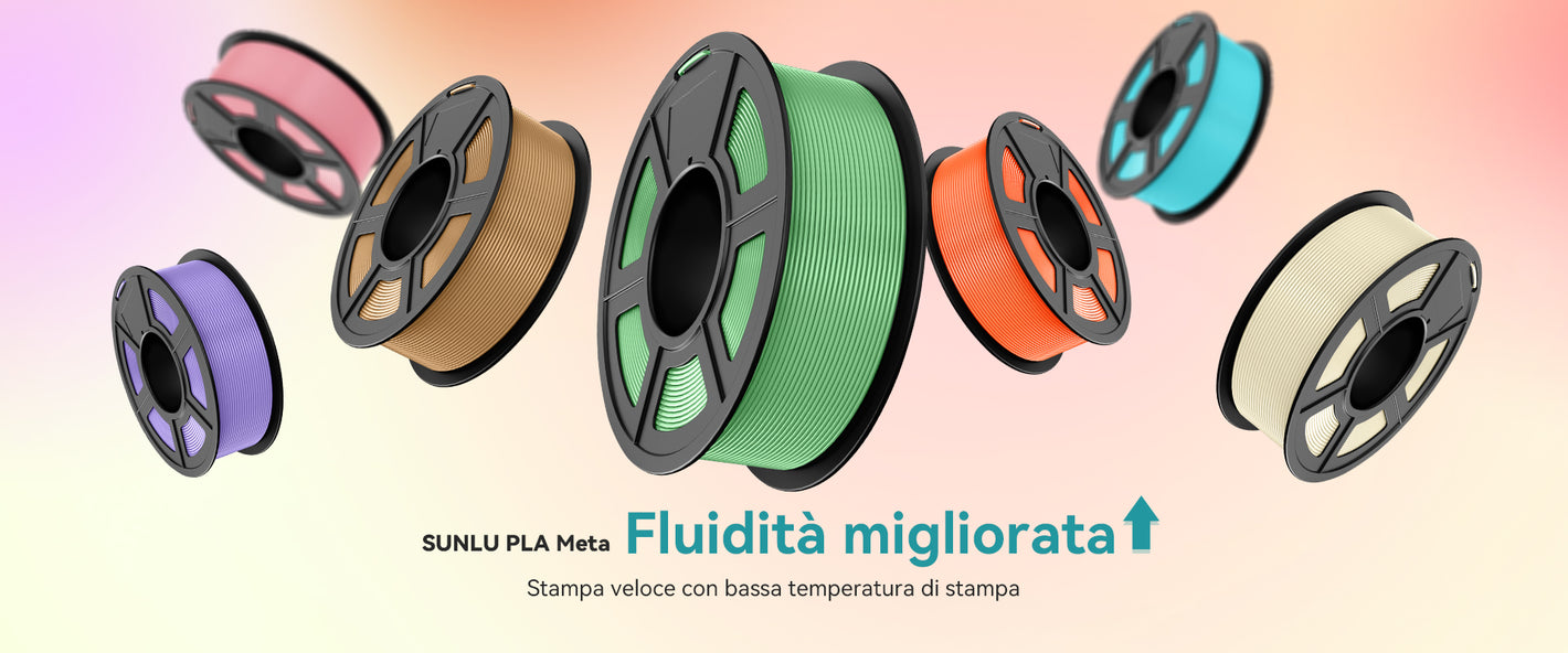【Stampa ad alta velocità a bassa temperatura】Filamento per stampante 3D SUNLU 1,75 mm PLA Meta (tolleranza ± 0,02 mm) a spremitura fluida. Il filamento PLA Meta è 1,5 volte più fluido del PLA normale. Tolleranza minima e bassa deformazione per garantire un'alimentazione costante e stampe veloci, addio agli intasamenti.