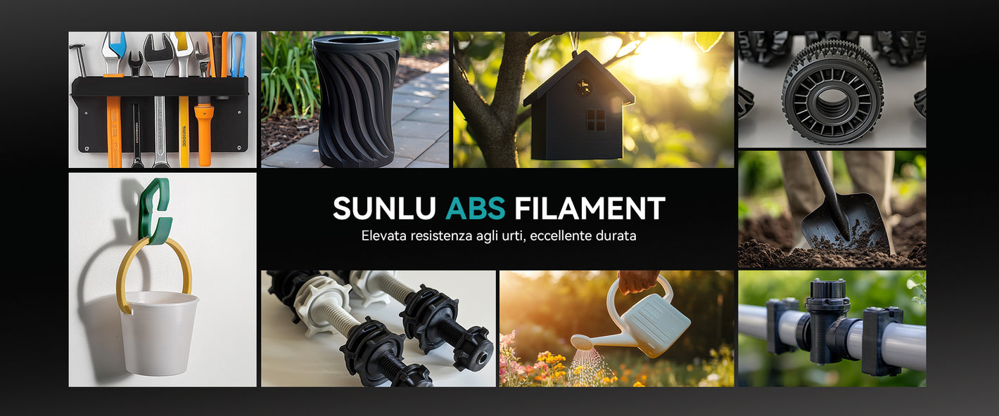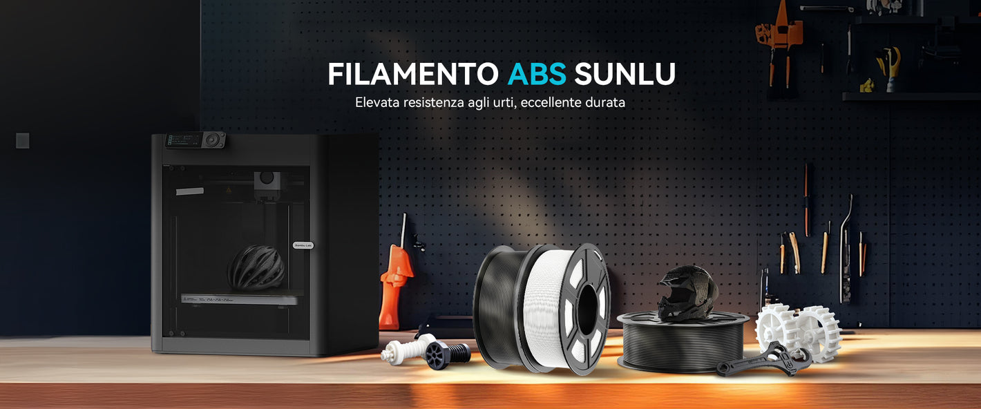 Il filamento ABS SUNLU è un materiale resistente e durevole, ideale per stampare oggetti robusti o componenti funzionali che richiedono una maggiore resistenza termica.
