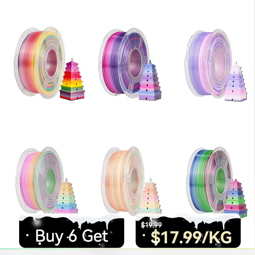 [MOQ: 3KG] Filamento per stampante 3D SILK Rainbow aggiornato (lunghezza di cambio colore 8 metri) 1 kg
