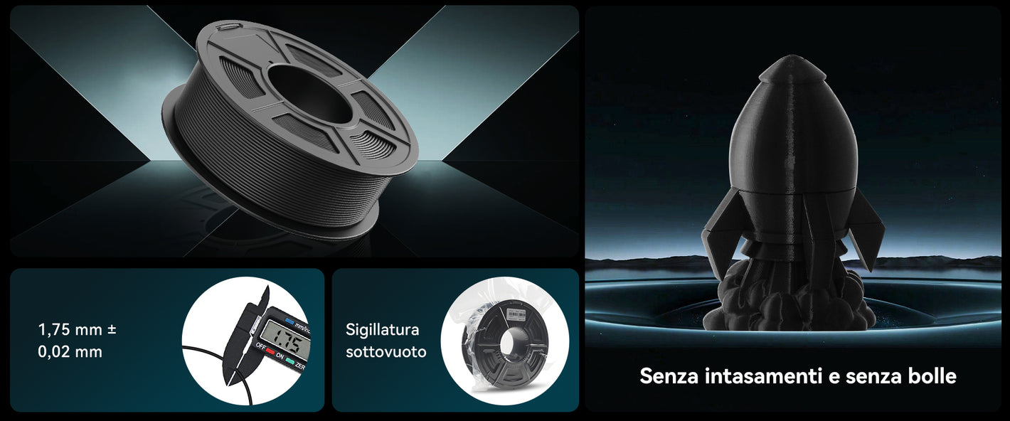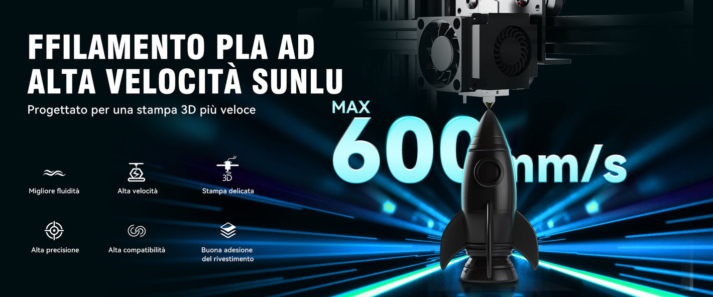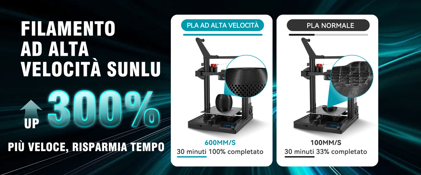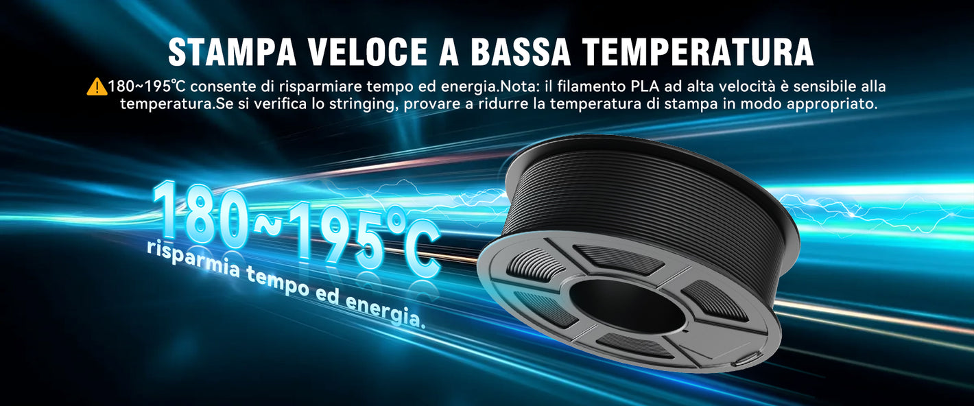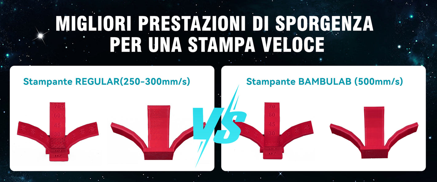 (Impostazioni consigliate: 190-210℃ a 50-150mm/s, 210-230℃ a 150-300mm/s, 230-260℃ a 300-600mm/s)