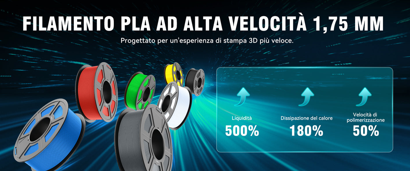 Le prestazioni del PLA ad alta velocità sono aumentate del 180%, con raffreddamento più rapido nelle stesse condizioni, permettendo stampe veloci senza accumuli di materiale.