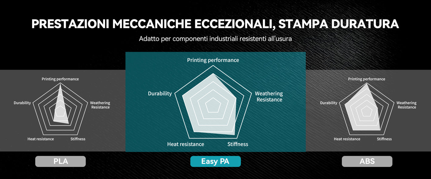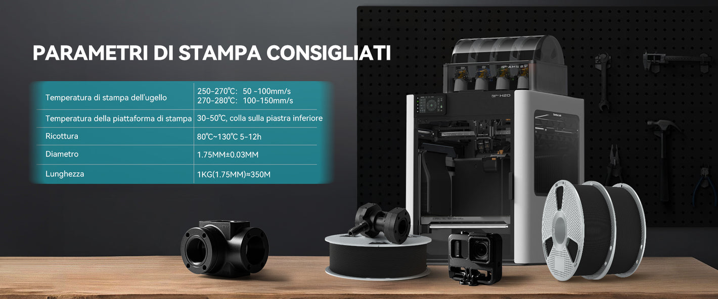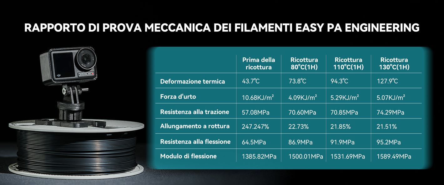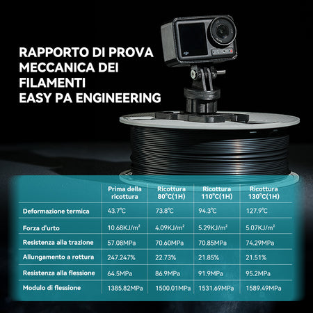 [Resistete all'umidità, stampate con sicurezza] Dite addio alle bobine rovinate! Easy PA viene fornito sigillato sottovuoto con essiccante e presenta una formulazione migliorata che lo rende resistente all'umidità ambientale durante la stampa e lo stoccaggio. Dedicate meno tempo alla disidratazione e più tempo alla stampa di parti resistenti e prive di bolle.