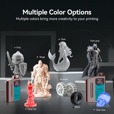 La resina fotopolimera SUNLU ABS-Like offre una tenacia e una resistenza all'abrasione superiori rispetto alle resine standard per stampa 3D. Progettata per essere non fragile, è l'ideale per stampare miniature e oggetti piccoli e dettagliati con una maggiore durabilità.