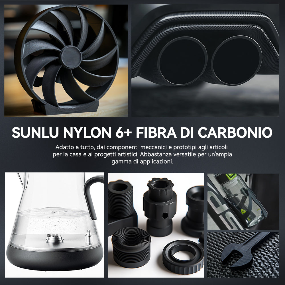 [Perfetto per Ingegneria Industriale]Progettato per resistenza e durata, il filamento PA6-CF SUNLU è adatto a usi industriali che richiedono elevata resistenza torsionale, tensile e agli urti. Ideale per: