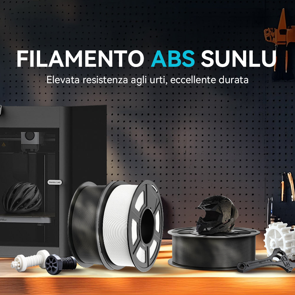 Il filamento SUNLU ABS 3D è un tipo di filamento resistente e durevole, ideale per la stampa di oggetti durevoli o parti funzionali che richiedono una maggiore resistenza al calore.