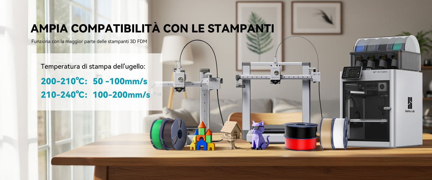 [Impostazioni Consigliate] Per ottenere i migliori risultati di stampa con il filamento SUNLU PLA, consigliamo: 50-100mm/s, a una temperatura dell'ugello di 200-210℃, 100-200mm/s, a una temperatura dell'ugello di 210-240℃.