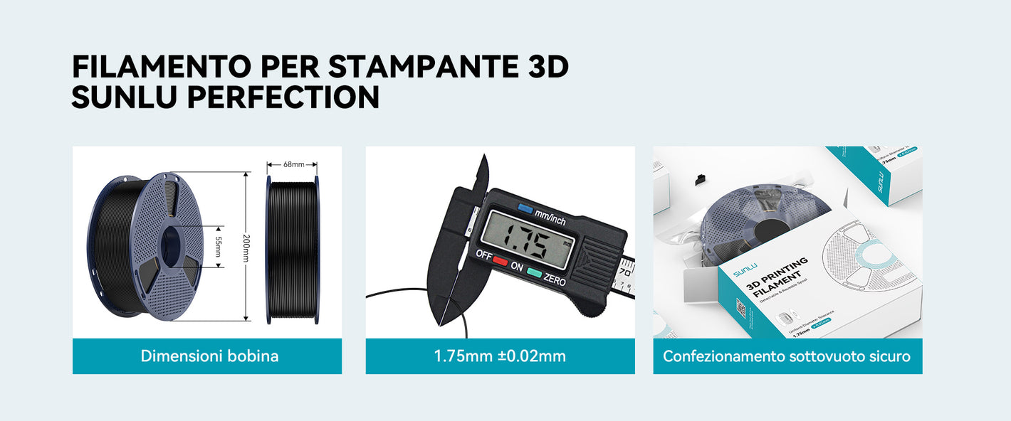 [SUNLU PLA Stampante 3D Filamento] Il materiale PLA è la scelta perfetta per gli appassionati di stampa 3D! Il filamento SUNLU PLA è affidabile, versatile e facile da usare. Niente ostruzioni, bolle o grovigli, la sua eccellente adesione tra gli strati garantisce stampe di alta qualità ogni volta. Ideale per principianti e utenti esperti.