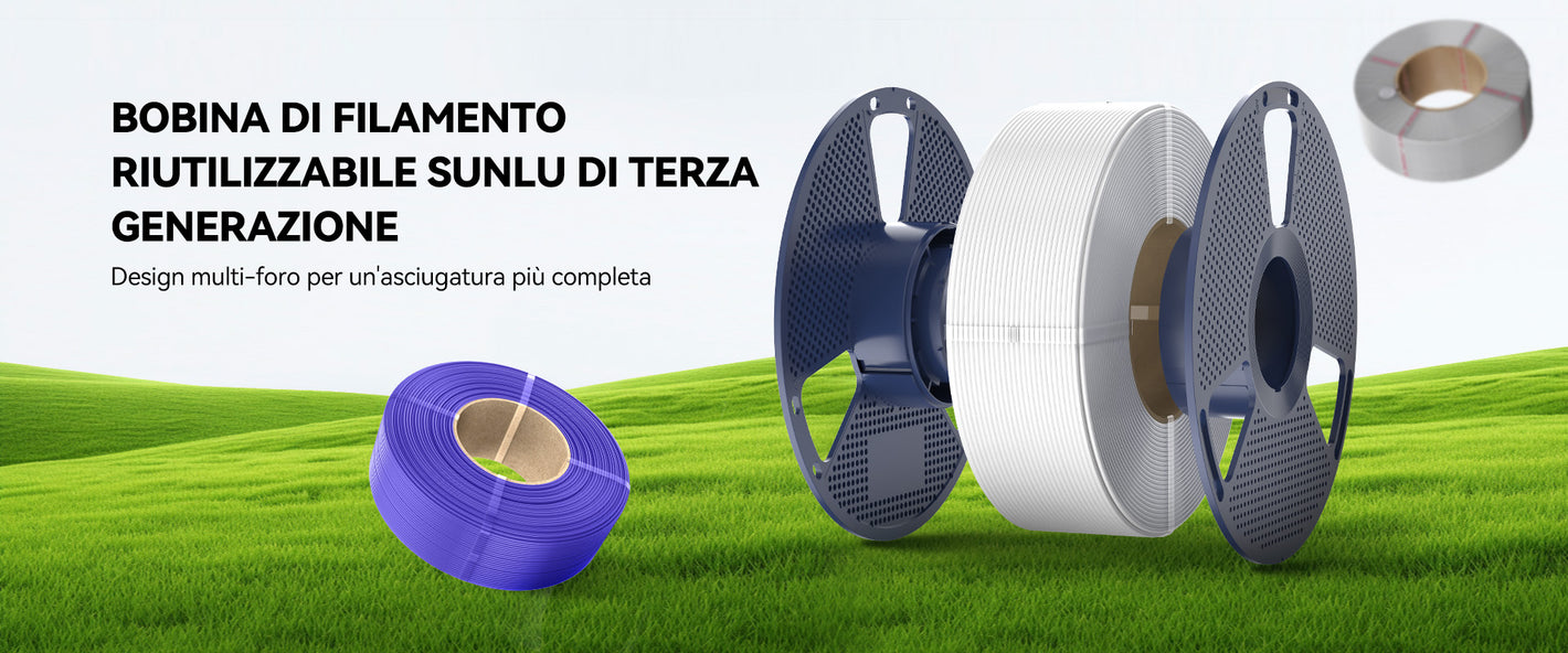 [Diametro della Bobina di Filamento] Diametro della bobina: 8,00", Larghezza della bobina: 2,50", Diametro del foro centrale della bobina: 2,20". Le dimensioni della bobina di filamento SUNLU sono adatte per essere appese su molte stampanti FDM 3D.