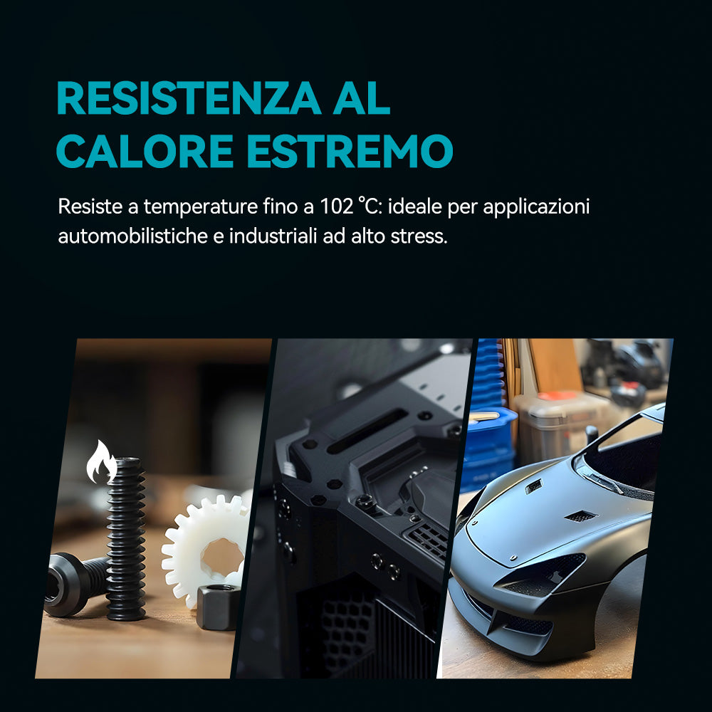 [Uso e applicazioni] Il filamento SUNLU PC-ABS è piuttosto economico rispetto ad alcuni materiali riempiti con fibra di carbonio. Le sue caratteristiche lo rendono ideale per parti interne di automobili come cruscotti, maniglie delle portiere o pannelli strumentali. Il SUNLU PC-ABS non si restringe molto durante il raffreddamento e resiste alle temperature all'interno di un'auto nera, nel deserto, in estate, con il sole che splende.