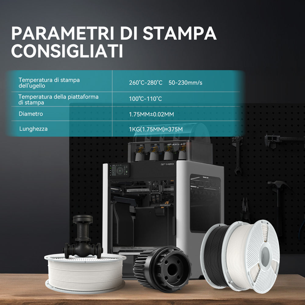 [Resistente, robusto e resistente al calore] Il filamento SUNLU PC-ABS da 1,75 mm è uno dei più resistenti e resistenti al calore tra tutti i filamenti 3D SUNLU disponibili per la stampa su stampanti di livello consumer. Si prega di notare che il PC-ABS è un filamento di ingegneria industriale che richiede un'alta temperatura di stampa e una temperatura della camera (circa 90˚C~100˚C), quindi assicuratevi che la vostra stampante sia adatta prima dell'acquisto.