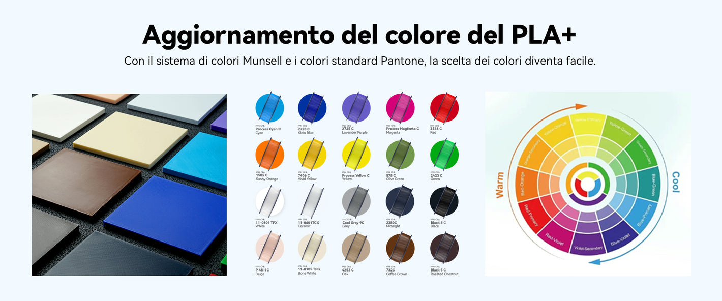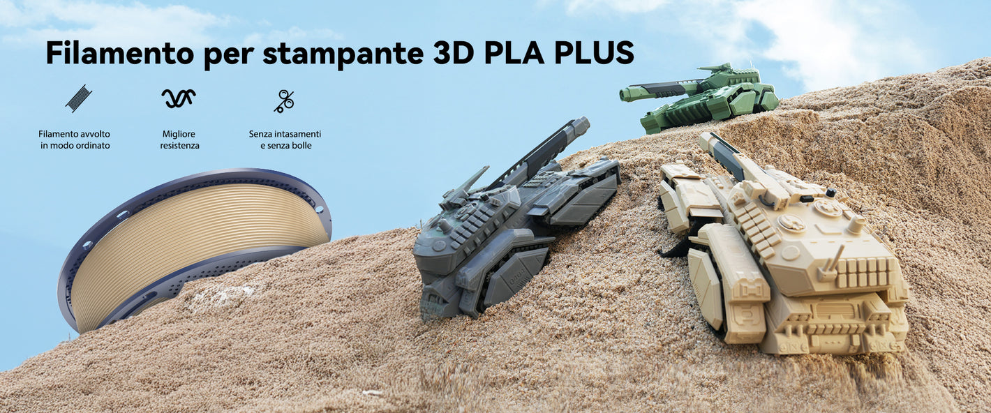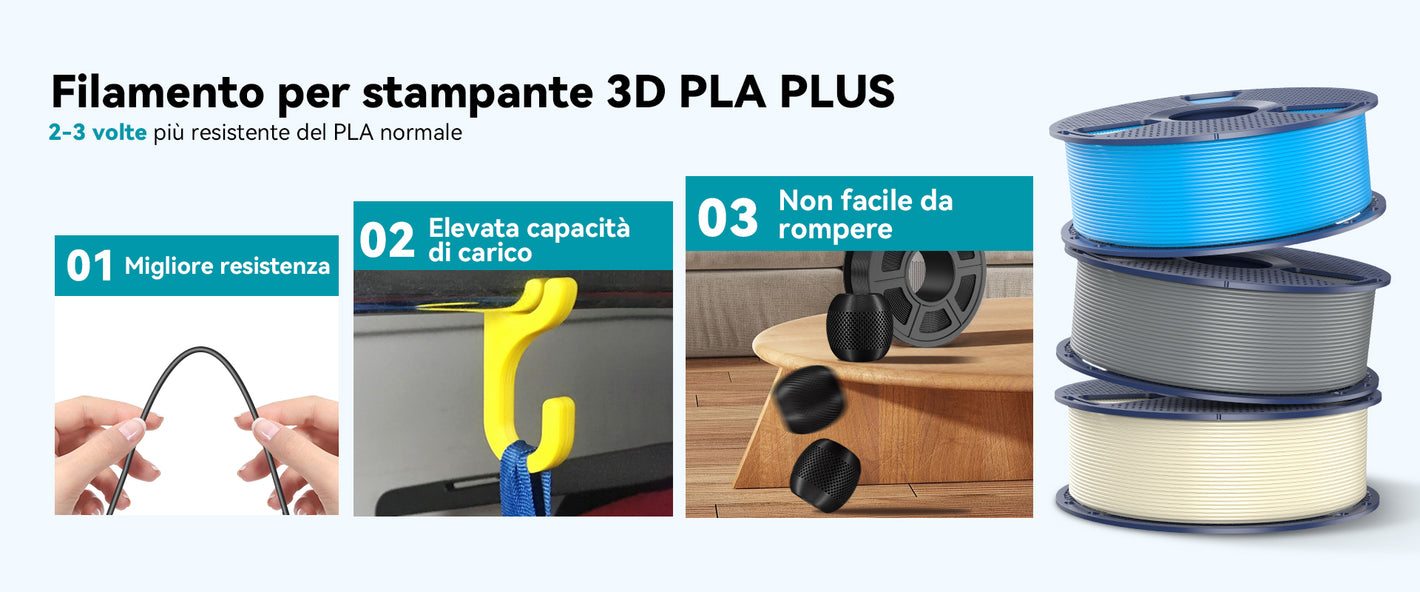 Resistenza agli urti fino a 8KJ/m² (2-3 volte superiore agli altri PLA/PLA+ sul mercato), colori più vivaci e assenza di problemi come ostruzioni, bolle, aggrovigliamenti, deformazioni o filamenti. Adesione ottimale tra gli strati e facilità d'uso.