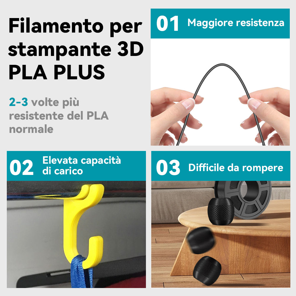 [MOQ: 3KG] Filamento PLA+ (PLA Plus) per Stampanti 3D, 1KG