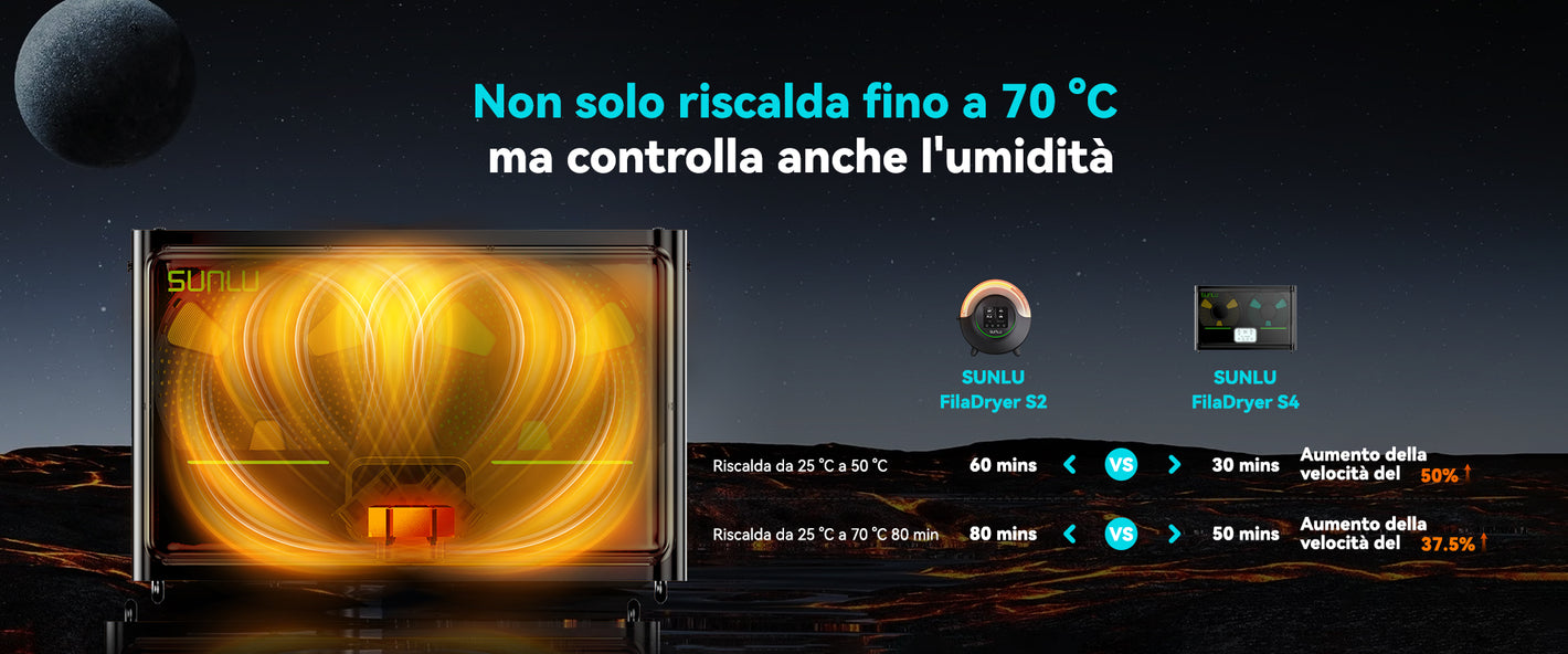 SUNLU FilaDryer S4, Bilanciamento di Temperatura e Alta Efficienza