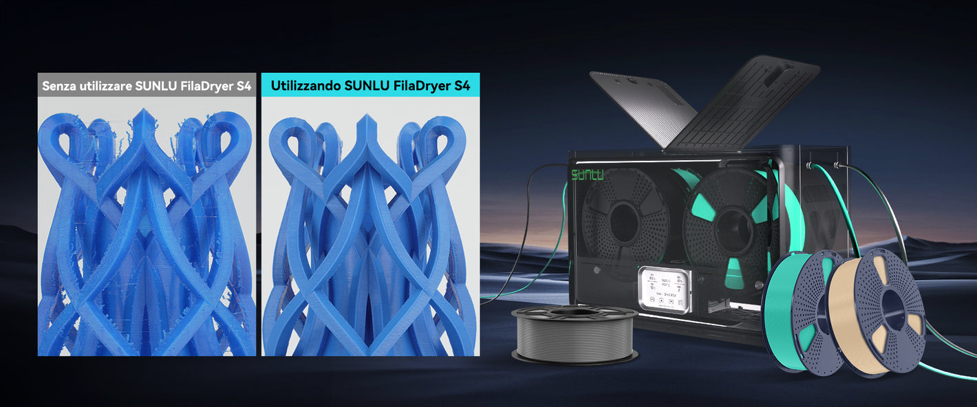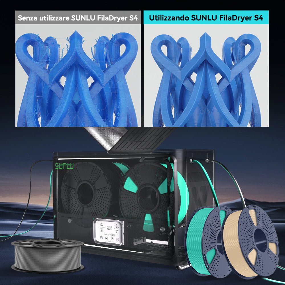 Oggi, con l'evoluzione della tecnologia di stampa 3D, riconosciamo che la domanda degli utenti per l'asciugatura dei filamenti di stampa 3D sta cambiando. In risposta, siamo orgogliosi di presentare il nuovissimo SUNLU FilaDryer S4.