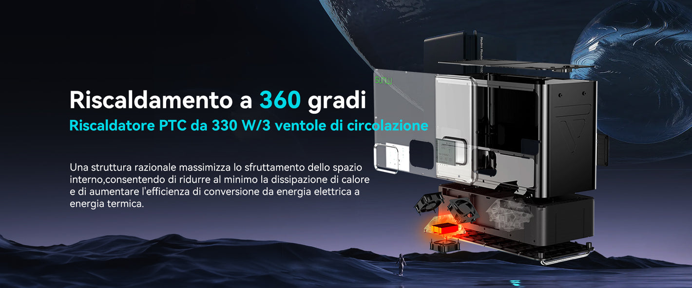 [Riscaldamento Rapido] Riscaldatore PTC da 300W integrato, raggiunge i 50°C in 30 minuti, più veloce ed efficiente.