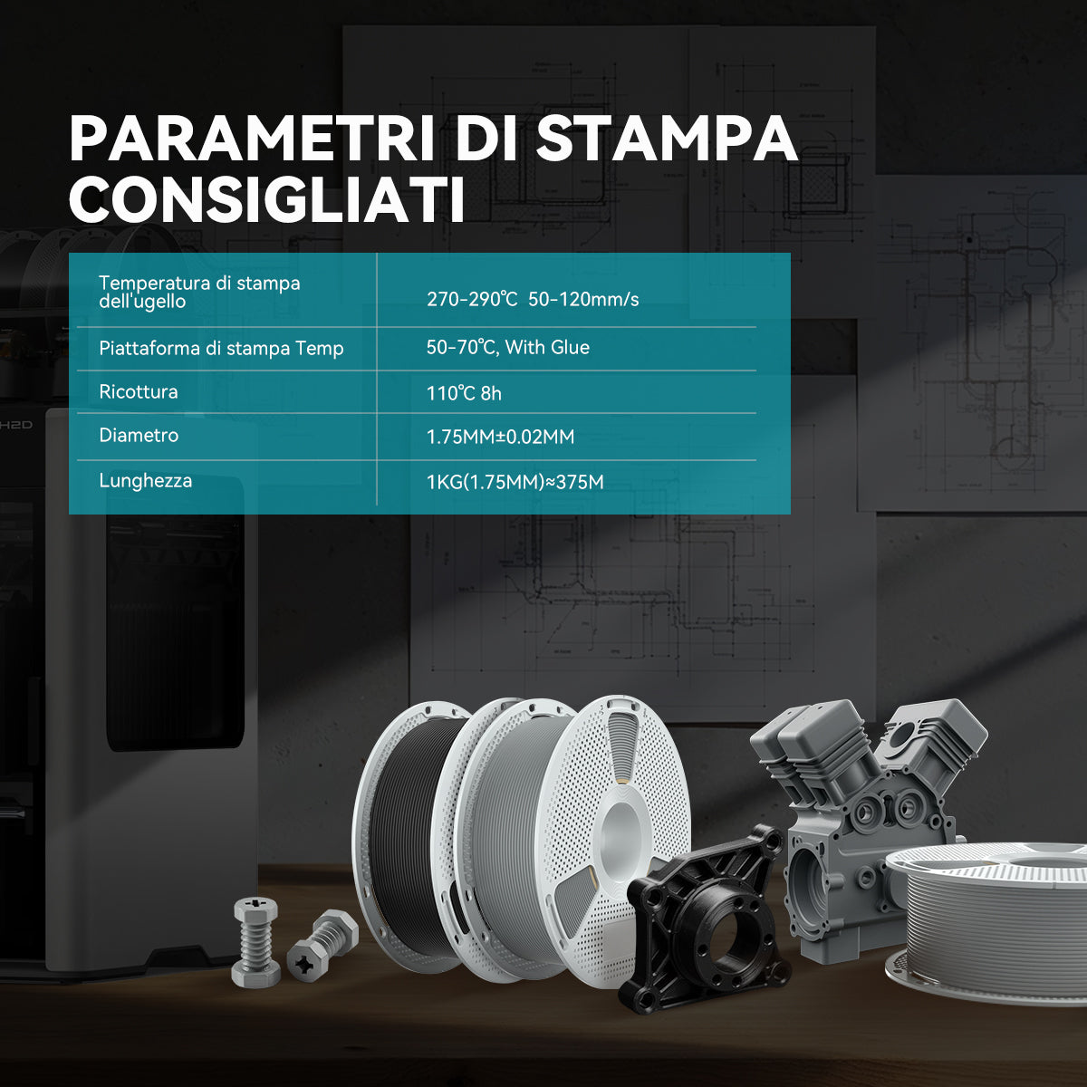 Filamento ultra-resistente da 1,75 mm con tenacità eccezionale. Ideale per: