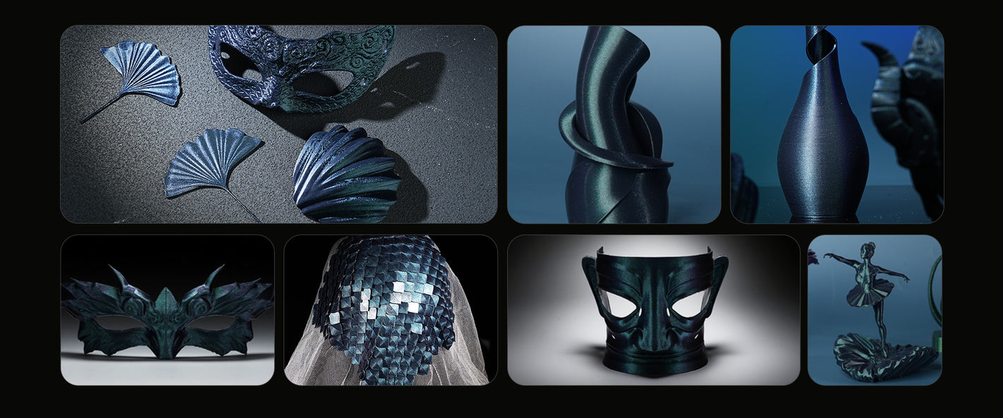 Dai ornamenti decorativi e gioielli ai accessori per cosplay, capi di moda e sculture artistiche, il PLA Galaxy apre possibilità illimitate per progetti creativi. La sua finitura accattivante lo rende ideale per pezzi da esposizione, regali o qualsiasi cosa progettata per distinguersi. Che tu sia un appassionato o un professionista, questo filamento eleva i tuoi design al livello successivo.