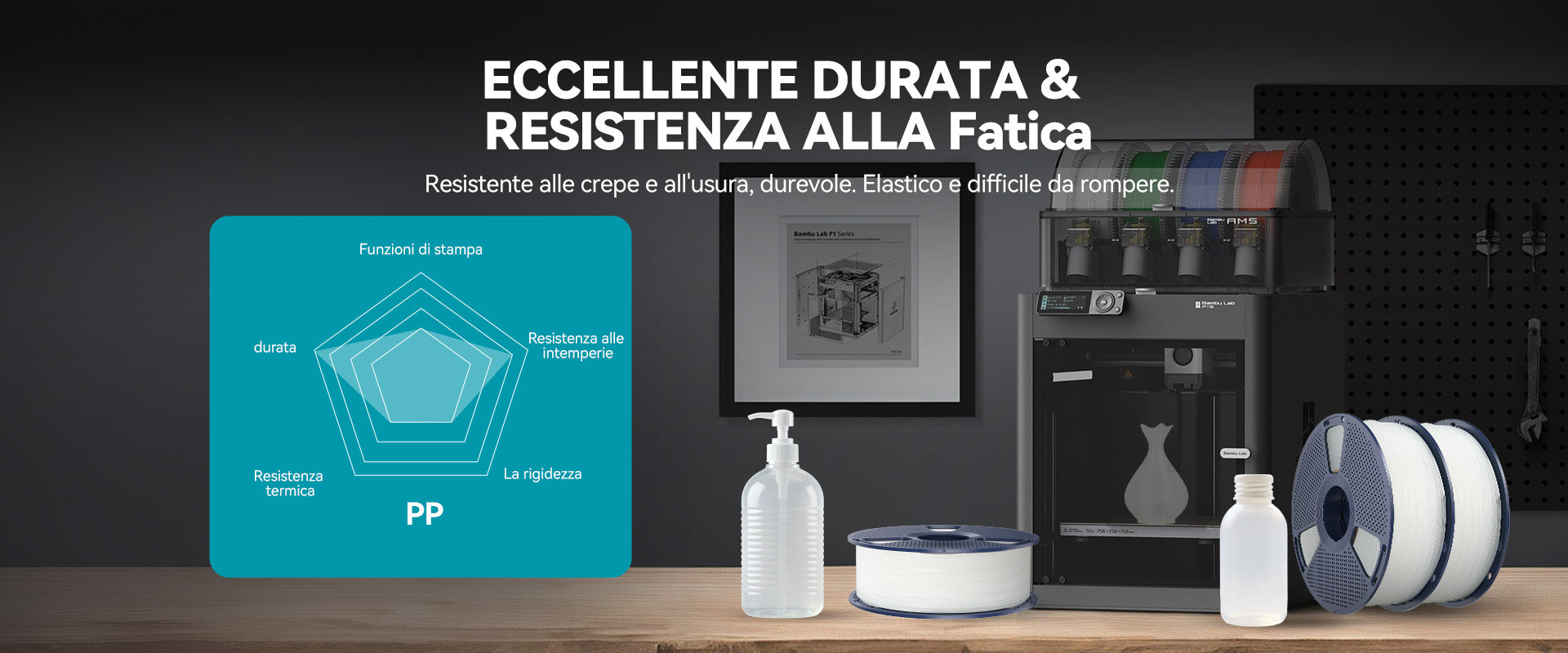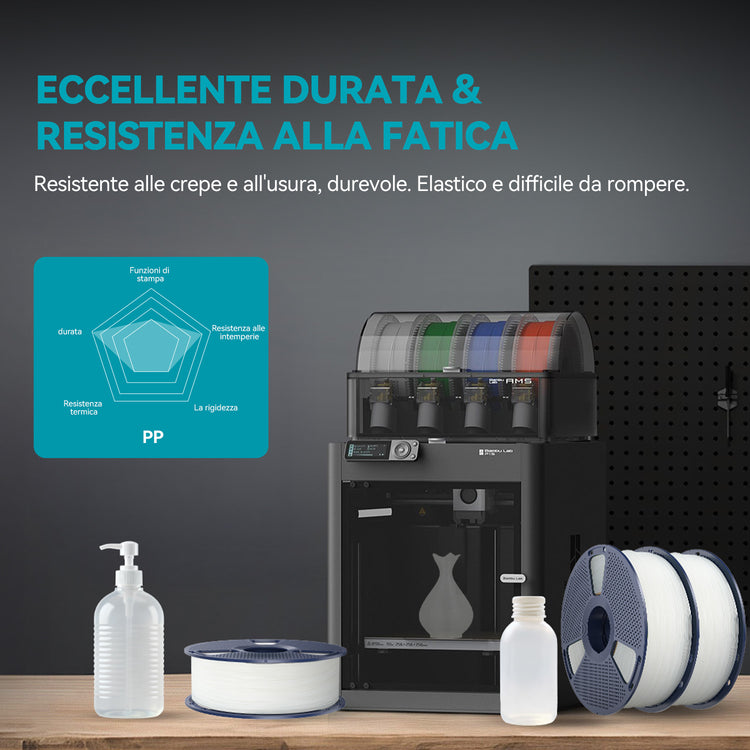 Con la sua eccezionale tenacità, elasticità e resistenza alla frattura, il filamento per stampa 3D SUNLU in PP offre elevata resistenza agli urti e flessibilità, rendendolo ideale per parti durevoli e resistenti alla fatica.